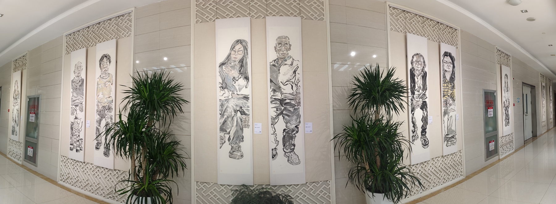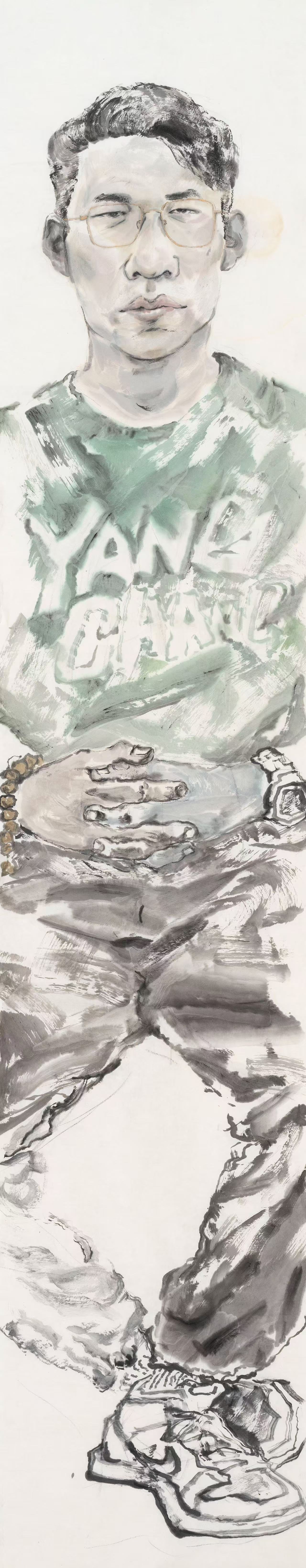 “恩师陈晗晟教授时以“笔墨贵在传神”相诫。求学这两年,我将写生的镜头聚焦在身边的平凡人身上,佝偻的老者、发呆的同窗,或害羞,或苦闷…虽没有草原牧歌的浪漫和策马奔腾的潇洒,但这十余幅六尺条屏记录的,是我眼中的青城。”