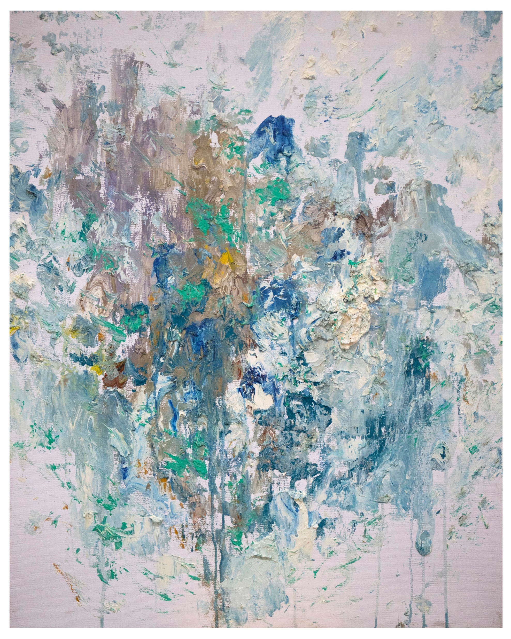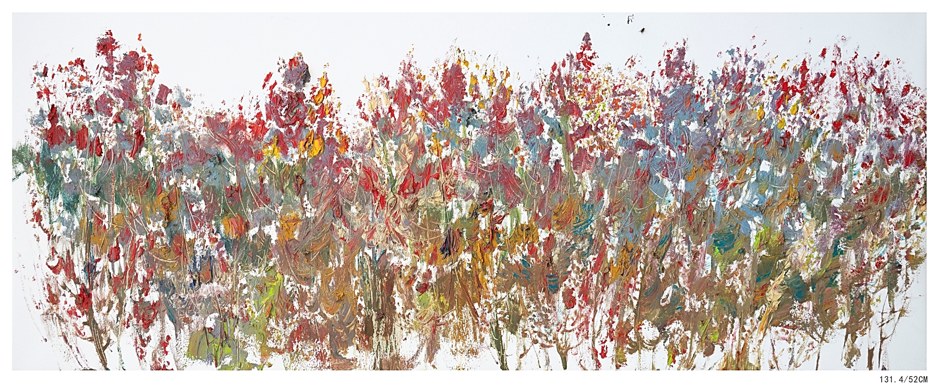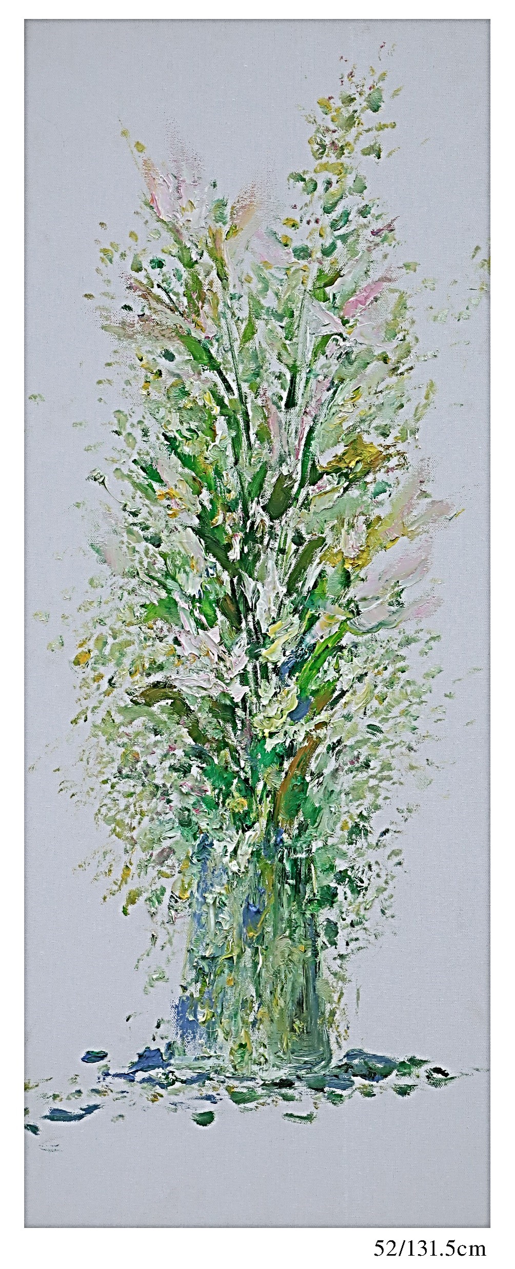 大海的花,无论是色与形都保留着铺写的笔意形态,又呈现出油彩特有的光泽和肌理,空灵意象焕发出油彩的特质,也许是大海的独到之处。那种取其意象的笔迹与笔意与背景形成生动气化的视觉效果,让观看者感受到无处不在的生机。作品中透露出的生机与空间是自然景象在大脑中反复蕴涵而幻化出的视觉形象,接近了逍遥与恣意……