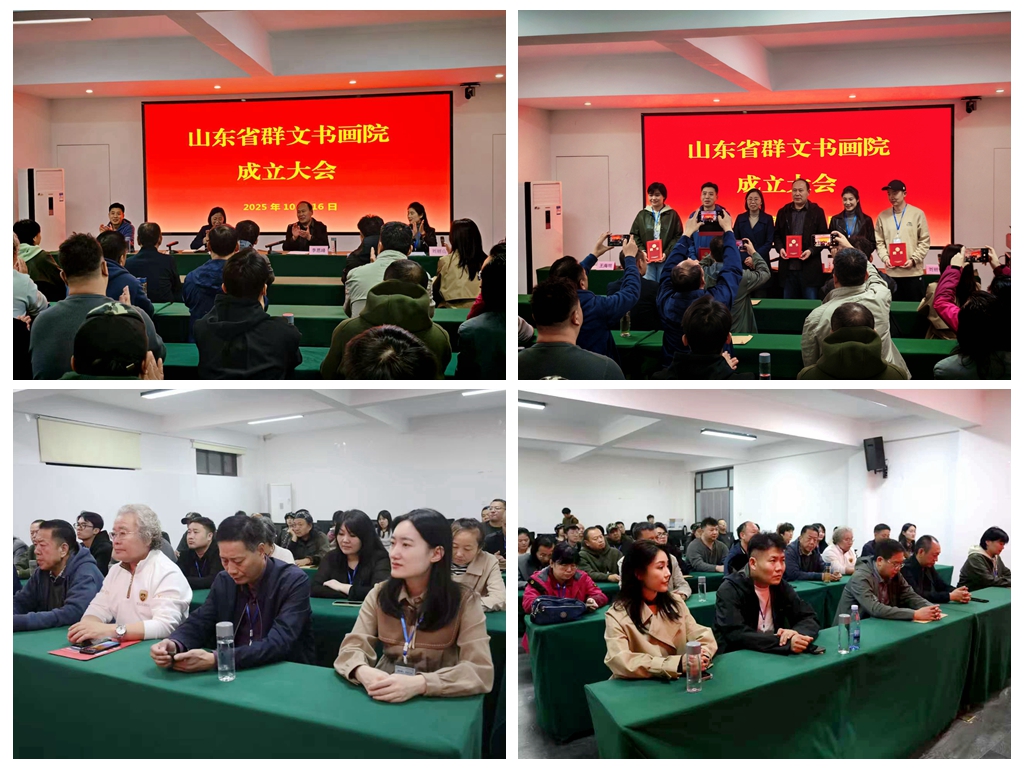 16日晚七点,召开山东省群文书画院成立大会。会上山东省文旅厅公共文化服务处副处长郅梅,受山东省群众文化学会会长、山东省文旅厅公共文化服务处处长冯庆东委托,宣读了成立山东省群文书画院的决定。颁发了院长、副院长、秘书长聘任书。新聘任群文书画院院长李思峰带领大家共同学习了山东省群文书画院的建设规划和职责范围。