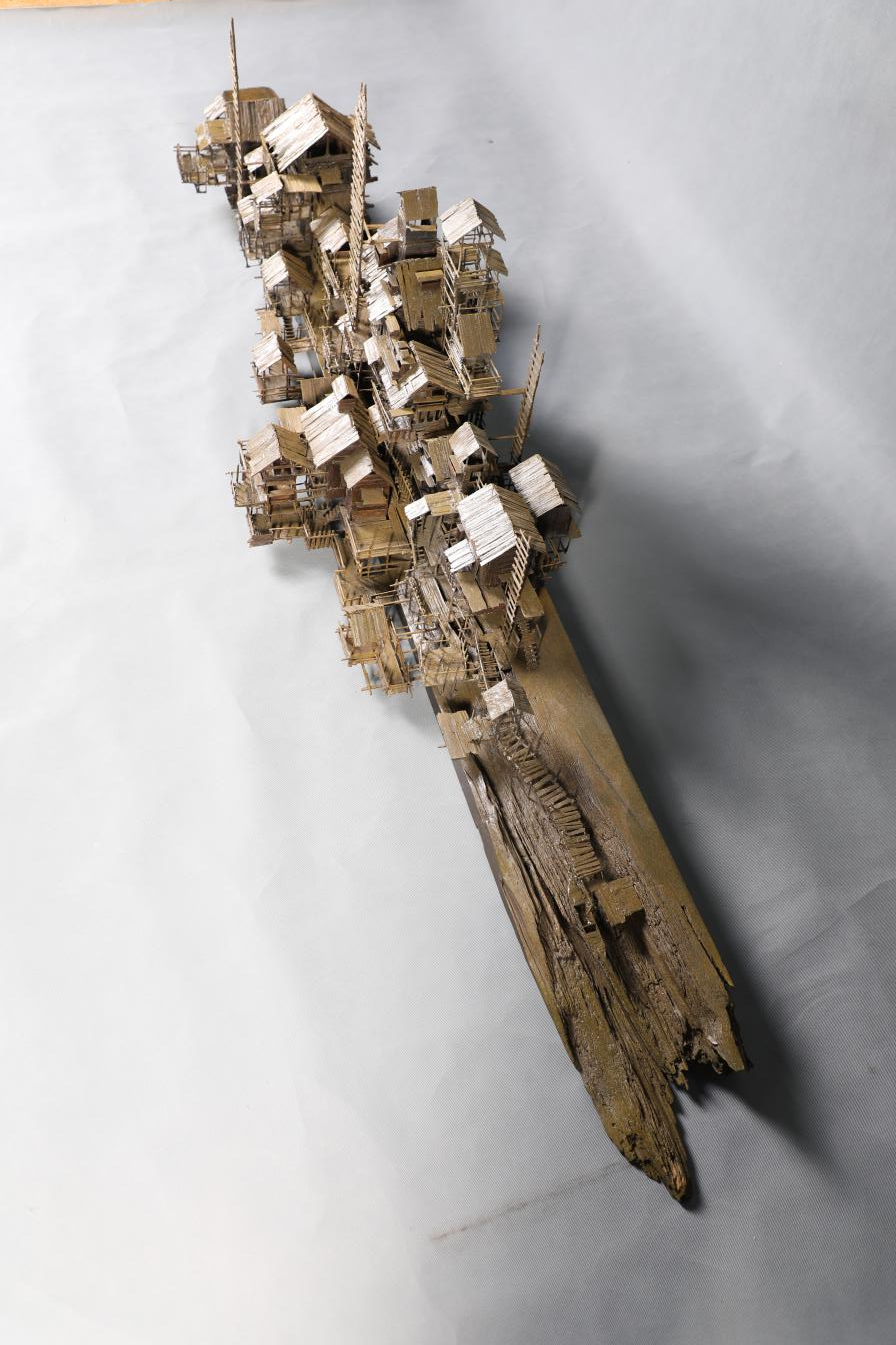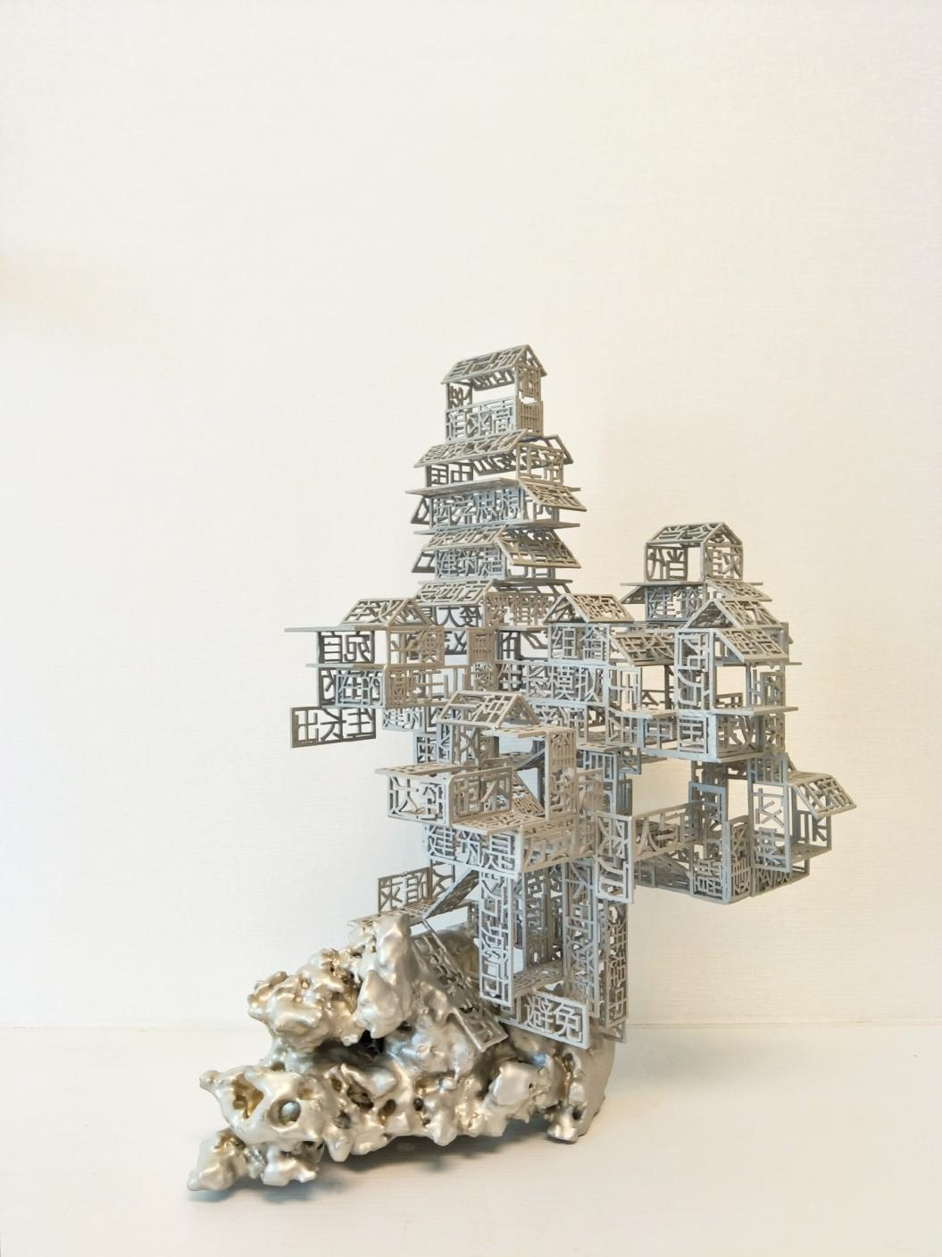 所以我们不仅应该关注对于新建筑的探索,更应关注的是对曾经充满了自然山水诗意的栖居之所的重建;越过当代建筑的抽象概念,在尊重文化多样性和差异性的基础上进行对话,寻找一种与自然彼此交融的生活方式是当下我们应有的态度。本着对传统古建文化的尊重与传承,并且结合自己所关注的社会现状,我运用超现实主义的创作手法,将古典建筑元素与当代建筑构成方式进行组合重构,在与逻辑构造和物理承重的对抗中,塑造了一个个东西方建筑文化矛盾存在的综合体。